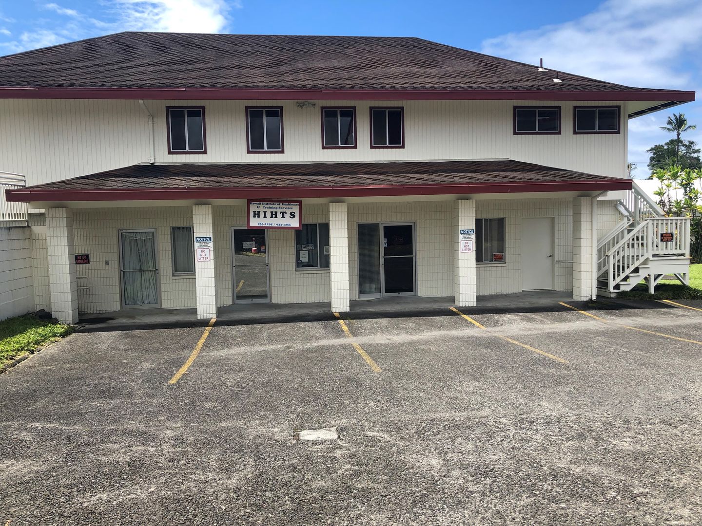 Medical/office space available for lease on the busy Kilauea Avenue in Hilo. This property offers great street visibility for signage and has a private parking lot with 2 disabled parking stalls and 11 tenant/customer parking stalls. The suite is located on the 2nd floor with ADA accessibility and was formerly used as a medical office and most recently as a physical therapy office. The layout includes a large waiting room, a large room/workstation that includes a reception area with a reception window to the waiting room, a file room, storage room, and a small office/storage. The remainder of the suite includes 3 private exam rooms, 1 private office, break room, and 2 restrooms. The space is in the process of being remodeled with new flooring, fresh paint, and new AC system.